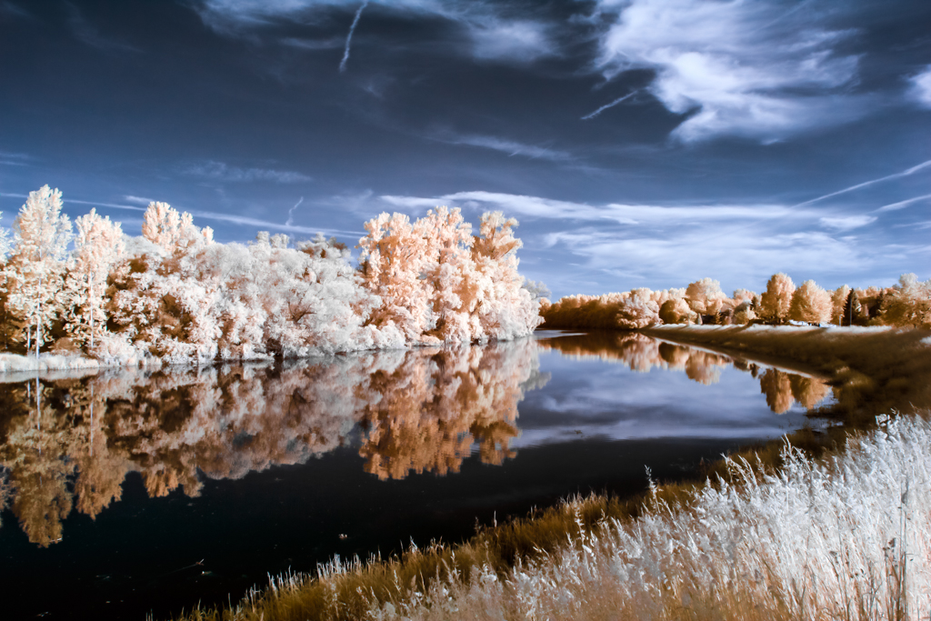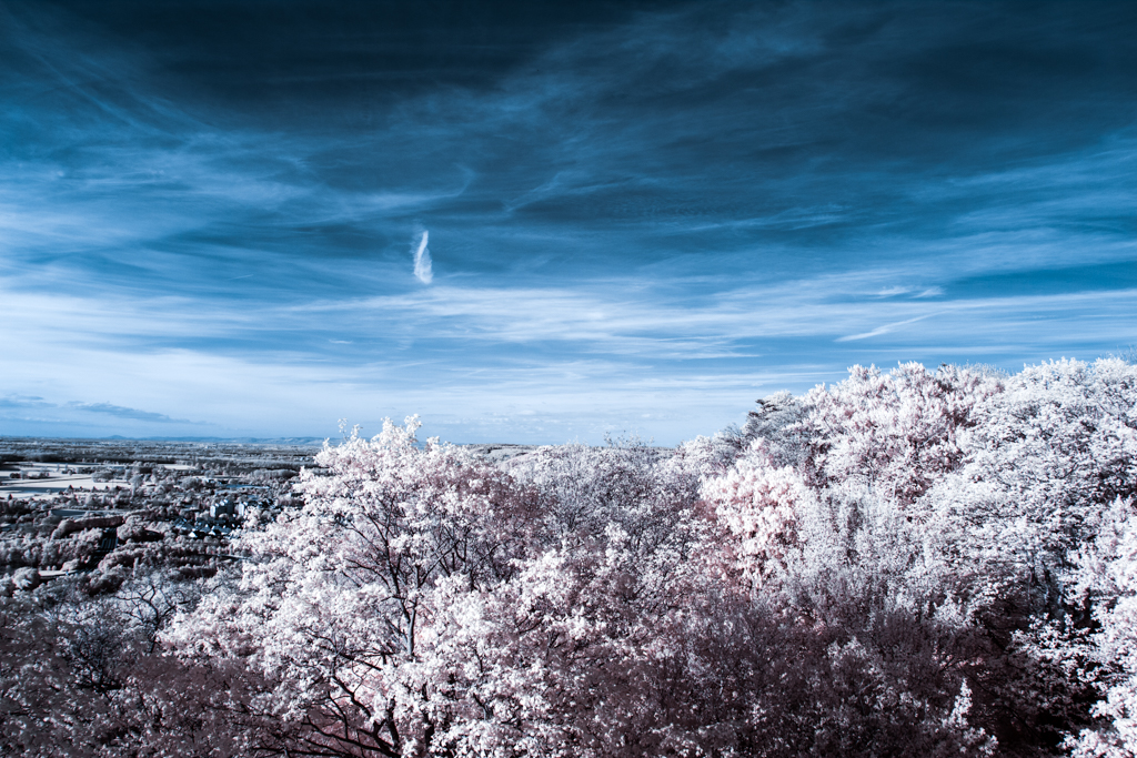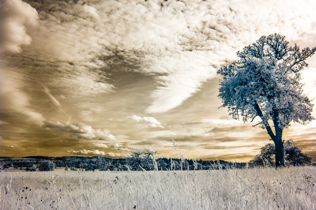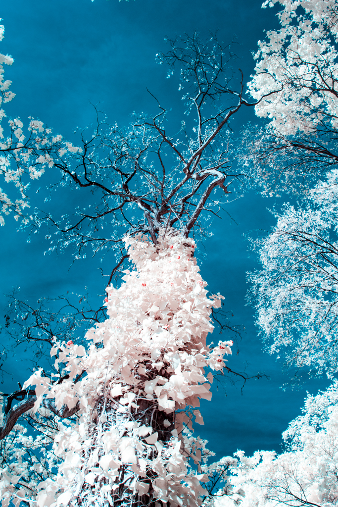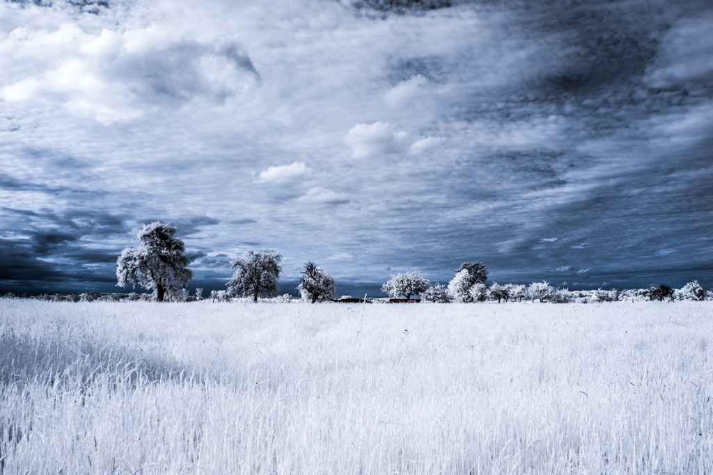 These infrared photographies have been taken with a modified EOS 60d, with a band pass filter for light with wavelength of 642nm to 842nm.