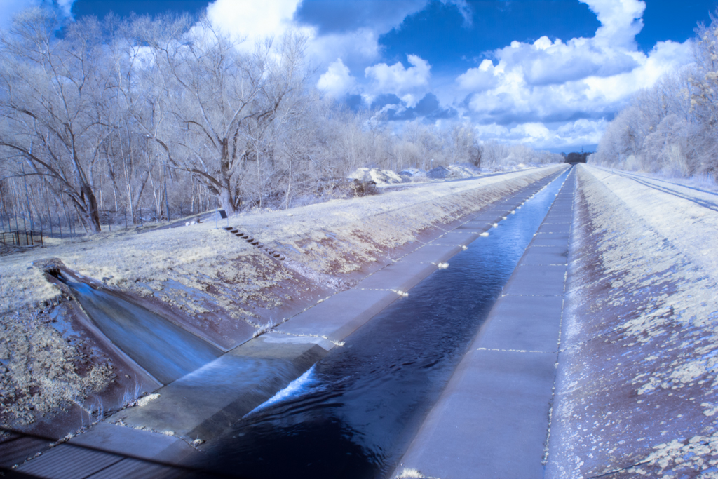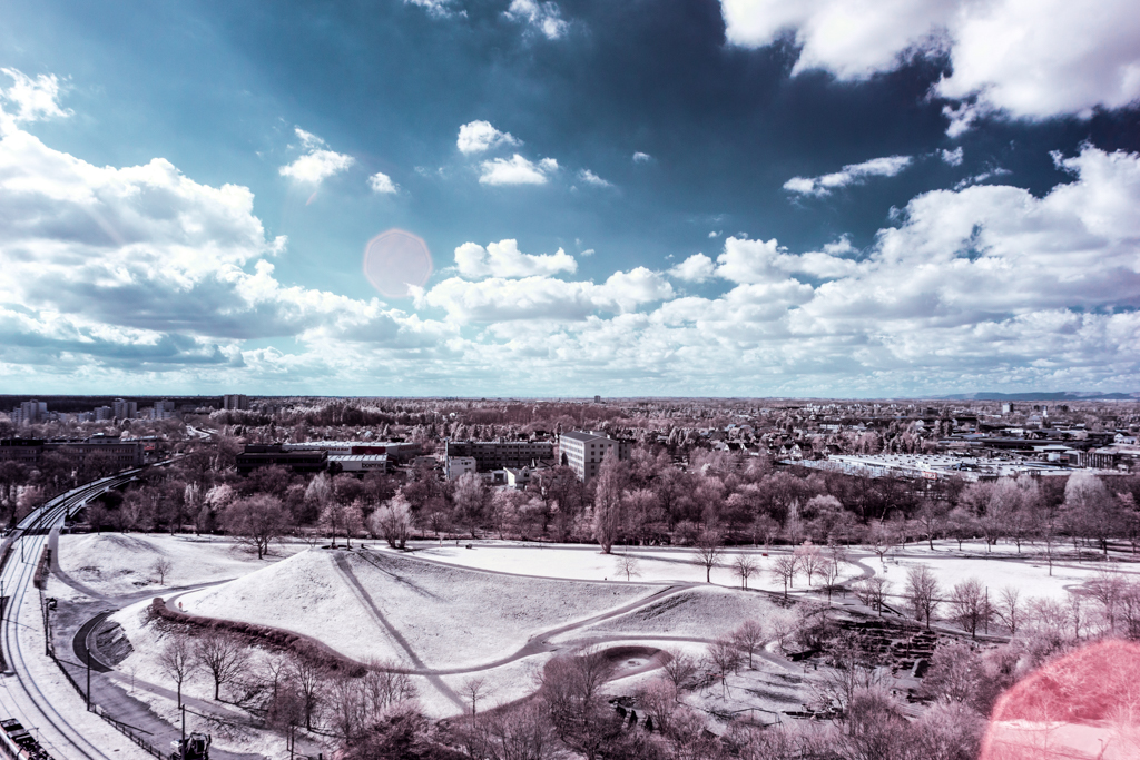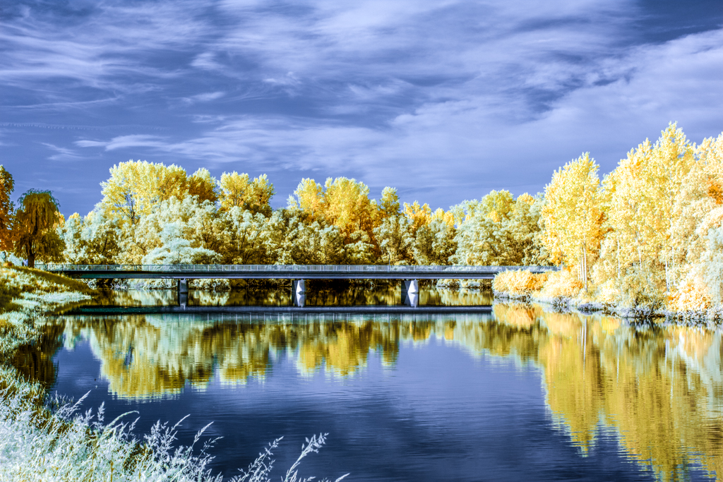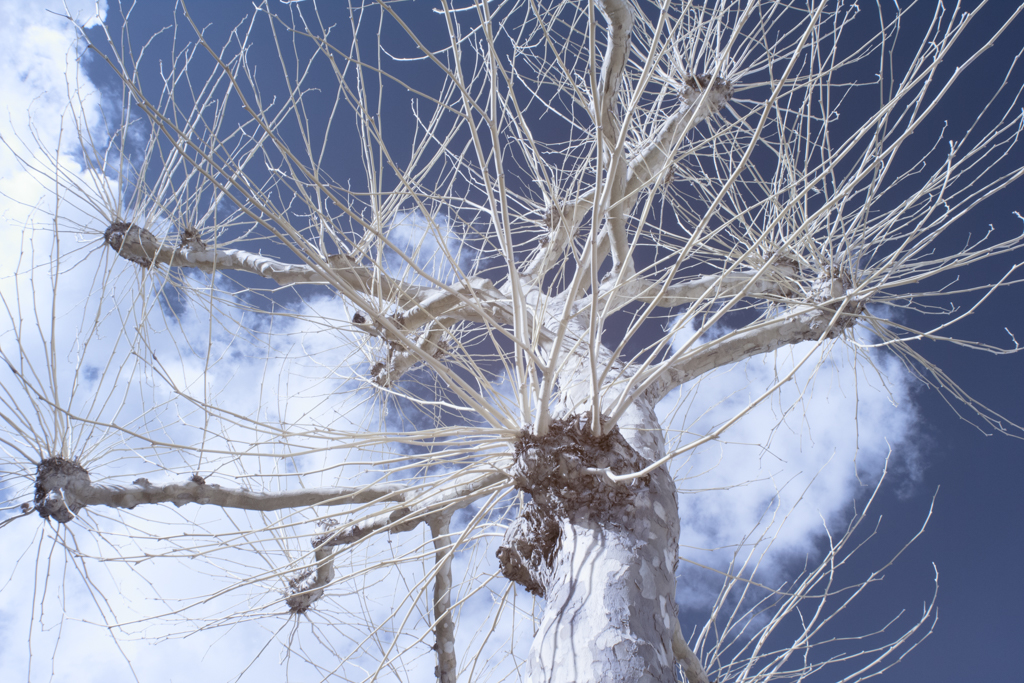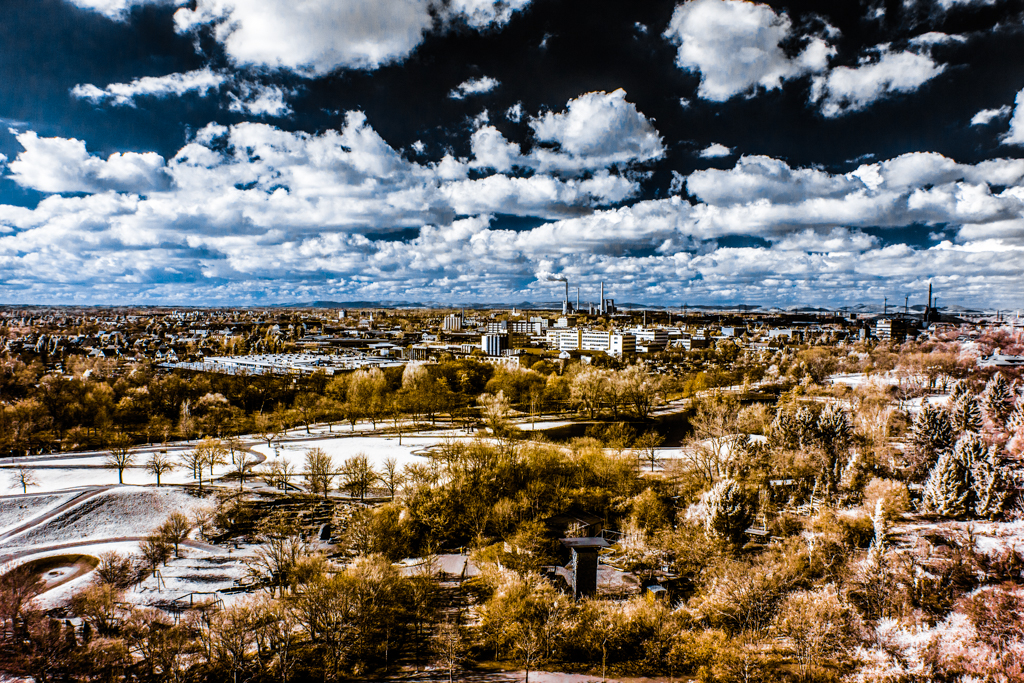 These infrared photographies have been taken with a modified EOS 60d, with a band pass filter for light with wavelength of 642nm to 842nm.